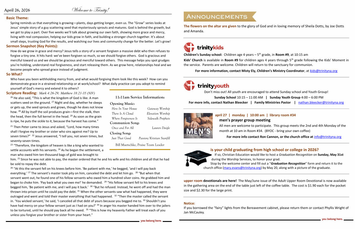 April 26, 2026 Welcome to Trinity!
