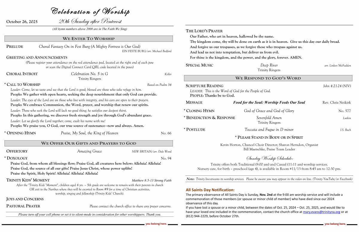 C e l e b r a t i o n o f W o r s h i p 20th Sunday after Pentecost